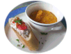 レシピ、人参と北海のグレーの小エビで、食べるスープ。北海の小エビとクリームチーズのディップ。