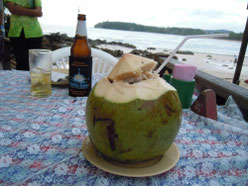 料理用のココナッツ・クッキングオイルは、無色透明で甘みも香りもないので、どんな料理にも使えますが、肌や口から摂取するには、バージン・オイル、特にエクストラ・バージンが一番だと思います。無添加で成分も損なわれず、ココナッツの豊かな香りと甘さが抜群です。タイ産のエクストラ・バージンの値段は500mlで360バーツ(約9ユーロ)。タイの物価としては決して安くはないけれど、これ1本で化粧品と食用油の両方に使えるのなら一石二鳥、お得だと思います。
