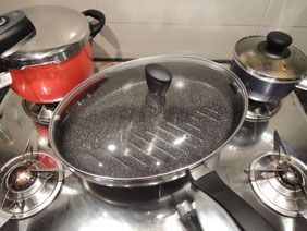 魚の場合油は引かずとも焼ける、さらに余分な脂肪も落としてくれるので、健康的で賢い商品だと思います。ガラス蓋付きなので、調理中のニオイが最小限に抑えられ、火加減も弱火から中火でOK。後片付けも簡単です。