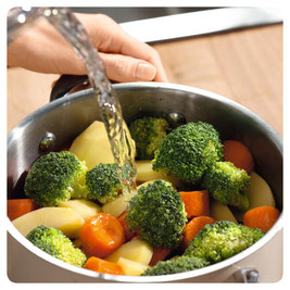 ところで、ブリタを使って水道水を漉すと、石灰分や塩素を除くだけでなく、水道管の鉛や亜鉛などの金属もほとんど除くことができるので、すっきりした味になり、材料の持ち味や色を損なわいないといわれています。尚、ブリタのフィルターの中身は木炭なのでリサイクルができます。健康食品店やビオの店に持って行けば、これまた環境汚染の防止に一役買うことになります。