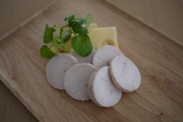 分をとり、ラップに包み両端を輪ゴムで留めてソーセー