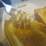 ④種をかき出し、フォークで果肉をほぐしながら取り出す。