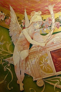 その後、サロンバーを改装した際に、天井に描かれた当時の壁画が現れ、関係者を喜ばせるというハプニングがあった。現在ではその全てが見られるので、豪華なシャンデリアやステンドグラスと共に鑑賞したい。