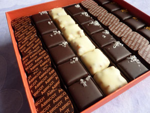 王室御用達のショコラティエ、ガレーがプラリネの形とその化粧箱を一新した。四角形になったプラリネの上には、中身のガナッシュが一目で判断できる様、ロゴやワンポイントの飾りをつけた。例えば、新作“Coco”にはココナッツの粉を飾り、“Abricot”にはアプリコットのロゴ、“Sel de Guérande” にはゲランドの塩を乗せた。いずれもダークチョコレートのコーティングだ。優しい甘さのココナッツのガナッシュ、またアプリコットのフルーティーな酸味やゲランドの味わい深い塩味が、そのほろ苦さとマッチして抜群のハーモニーを醸す。