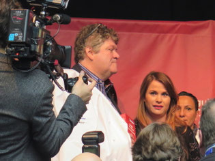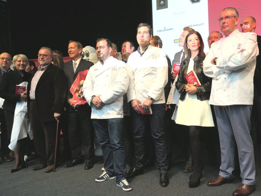 当日はシェフやその家族をはじめ、続々と集まる関係者で広い発表会場はたちまち埋まり、緊張の内に発表が待たれた。次々と発表される星ごとに上がる歓声と喝采。最高潮に達した3つ星シェフの発表後は、ホテル学校の生徒が大勢の人の間をぬってサービスするシャンパンと料理でお祭り騒ぎは幕を閉じた。写真でその雰囲気をどうぞ。