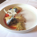 当店のスペシャリティは「自家製のスパイス」。ステファンが師匠と仰ぐブルターニュのオリビエ・ローランジェ(3ツ星を返上したシェフ。スパイスの魔術師といわれる)で学んだスパイス使いが、ベルギー産の食材を引き立て、今までに味わったことがないような料理に仕上げる。食材も地産地消が基本で、ベルギーの養鶏家やチーズ生産者との密なコンタクトなしには「星」はなかったという。