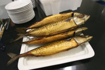 そのなかで初めて知ったのが、キッパーと呼ばれるニシン(またはタラ)の燻製だ。最近では大きなホテルでは出てこないが、イギリスの田舎などのホテルで朝食に出てくるらしい。朝食に魚や卵を食べる日本人はきっと好きだと思うと太鼓判を押してくれた。大使の説明によると、茹でて熱くしたキッパーの上にバターの塊りやポーチド・エッグをのせて出てくるらしい。フ~ン、燻製を茹でるのか・・・。茹でたら味がなくなってしまうのではないかしら? 料理法はともかく、キッパーなるものに興味をもった私は、魚の燻製ならベルギーにもあるはずと捜したら、ありました。サバやニシンの燻製がそのままでも真空パックでも売っていました。チョッとオーブン温めて食べるとなかなかいける。和風にタイ風にと工夫次第でいろいろに応用できそうだ。おかげでひとつ食材を覚えられたインタヴューだった。