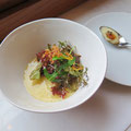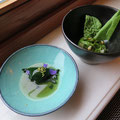 多くの郷土の野菜を使い、豆腐や胡麻、ひじき、キムチなど東洋の食材もさりげなくバランスよく配合した料理は色鮮やかで胃にも快適だ。小鉢に盛られ次々に登場する創作力溢れる料理は楽しい驚きの連続である。