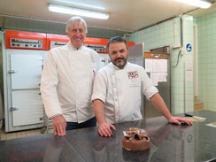 王室御用達のパティスリー、ヴィタメールにはサンバ(samba)、ランゴ(Lingo)、フォレ・ノワール(Forêt-Noire)など、定番といわれる菓子がいくつかあります。今回はそのフォレ・ノワールの作り方を紹介して頂きました。オーナシェフのポールさんが創作したこのケーキにはキルシュ酒を入れてありません。ここが老若男女だれからも愛される理由の一つなのかも知れません。シェフ・パティシエのクリストフさんが、いかにも簡単そうにガナッシュのリボンで飾りを仕上げていますが、あれって難しいんですよ。