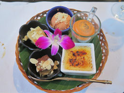 料理は、アラカルトやコースメニュー(40€や60€)の他、お任せ料理が出る水曜日のTable Siamoise、日曜のブランチがある。オンライン注文やテイクアウト、ケータリング・サービスもあり、ブルーエレファン印の食材も売っている(Deli Traiteurでも購買可)。料理教室は月の最初の木曜日に実施している。
