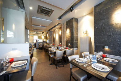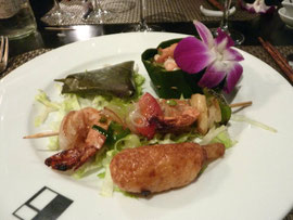 フレッシュミントやバジル、シトロネルなどの香草たっぷりの料理は選択するのが困るほど種類が多い。スペシャリティは、驚くほどの種類の肉やエビ類、新鮮な野菜をダシで煮るフォンデュ(48€/2人)。ライス・テーブルは、3種類の前菜と3種類のメイン(45€/2人)。明るい地上階、植民地時代を思わせる2階も楽しい雰囲気だ。