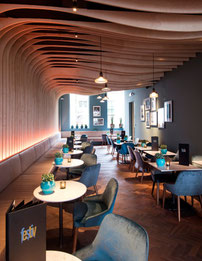 レストランの隣りには同店経営のバー(Bar Festiv)があり、船の底ともくじらの骨とも思える天井は一見に値する。毎日11時から開いているバーでは軽いランチも食べられ、木、金、土曜の夜はDJ の音楽で盛り上がる。尚、両店は同じ建物だが、入り口が違うので通りの名前が違うのでご注意を。マルクト広場から徒歩で約10分。バスではアントワープ駅から17番のバスで終点MASまで約15分。