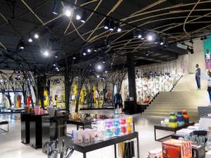 ブリュッセル店に足を踏み入れた途端、まず4000㎡という広いスペースに圧倒されることだろう。次にその個性ある商品揃えと並外れた内装にも驚嘆するはずだ。数えきれないほどあるブランドは、しかし競いあうことなく、それぞれの持ち味を主張しつつ全体で一つのアートにまとまり、オシャレでハイソな雰囲気を醸しだしている。