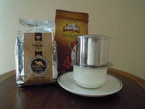 ベトナムコーヒーはほのかな甘い香りと味が特徴です。多種ある中でも、ベトナム産コピ・ルアック(ベトナムジャコウネコ)の糞から採取されたコーヒー/weawel coffee)は、甘く独特な芳香で深みと丸味のある味わいで人気の一品です。アルミやステンレス製の専用フィルターで1杯ずつ丁寧に作るコーヒーの入れ方は、フランス統治の昔から変わりません。30年くらい前までは、フランスやベルギーのカフェでコーヒーというと、このフィルター式コーヒーでした。