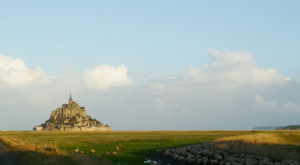サン・マロ湾に浮かぶ小島に建てられた修道院、モン・サン・ミッシェル。「聖ミカエルの山」という意で、司教オーバルが大天使ミカエル(フランス語でミッシェル)のお告げにより礼拝堂を建てたのが始まりで、その後、修道院が建てられ、増改築を繰り返して現在のような形になりました。一時期、要塞や牢獄として使われていた時代もあったそうです。