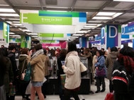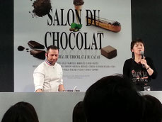 今年のサロン・デュ・ショコラは、会場が伊勢丹デパートから同じ新宿の新宿NSビルに移り、広くなりました。以前から外国では行われていたデザイナーとのコラボレーションのファツションの展示も初めて登場。会場でしか食べられないイートインやその場で作られるデザートもあります。アンリ・ルルーのクイニーアマン(324円)やジャンーポール・エヴァンのイートインは長蛇の列。手ごろな値段でここでしか味わえないものを手に入れようとする人々の熱気が会場に溢れていました。