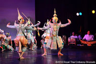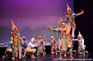 このライブ・パーフォーマンスは、タイ王国の文化省が、伝統的文化の保持と宣伝のため、総勢約50人の舞踊団をベルギーとオランダに派遣したものです。コーン(Khon)とは、王室の重要な催しのある時に演じられる仮面劇で、題目の「ラーマキエンRamakien 」は、ラーマ王子と美しい妻のシーター妃の物語です。これはインドの抒情詩「ラーマーヤナ」を元に、登場人物やストーリーをタイ風にアレンジしたものと解説にありました。