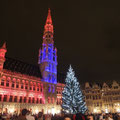 今年も例年通りキリスト生誕を祝う小屋が現れ、ツリーはLED(照明発光ダイオード)で輝いています。夜になると、サウンドと共に七色に変化するライティングで浮き彫りにされた市庁舎とツリー。素晴らしい幻想的な世界に、ただただ見とれる人々。世界で一番華麗な広場の面目躍如というものです。