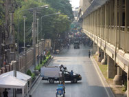 デモ騒ぎで突然通行止めとなった路上に、デモグッズ(笛やTシャツetc)売りが出没、アイスクリーム屋台もありました。ちょっと先ではデモ隊が騒いでいるというのに、不謹慎ですが思わず笑ってしまいました。逞しいというか強かというか、はたまた屈託がないというか、これぞタイなのでしょう。