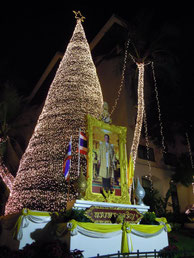 12月5日はプミポン国王のお誕生日。その前日にデモ隊はいったん解散し、町は大掃除されてデモ騒ぎなど嘘のようにきれいになりました。タイのすべての町で国王の写真を掲げてお祝いします。今年は、国王が静養中の別荘のあるホアヒンで祝賀パレードと祝典が盛大に行われました。国民が心を一つにした一日でした。今再びデモ隊は政府機関で座り込んでいます。新年を迎えるというのに、これからの動向がまだまだ気になります。